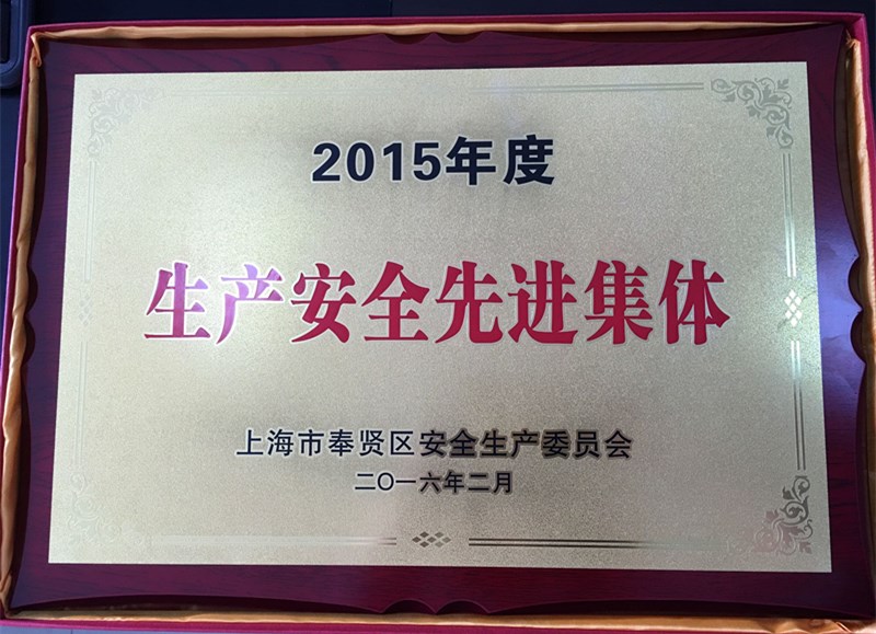 2016年3月21日,上海市奉賢區安全生產委員會向我公司頒發了“生產安全先進集體”榮譽銅牌,授予我公司安全生產先進集體稱號。
